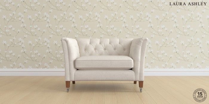 7.2.6 Buy Chatsworth Button Back by Laura Ashley Snuggle Anneliese Oyster Natural Straight Chrome Castor - Teak from the Laura Ashley online shop Click here to use our website with more accessibility support, for example screen readers