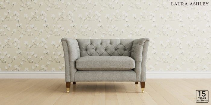 6.12.1 Buy Chatsworth Button Back by Laura Ashley Snuggle Anneliese Steel Grey Straight Brass Castor - Teak from the Laura Ashley online shop Click here to use our website with more accessibility support, for example screen readers
