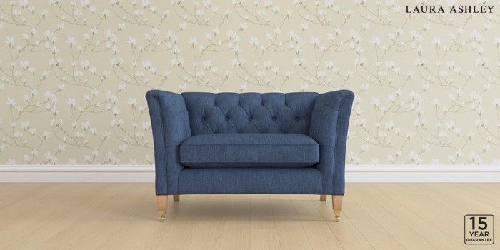 6.12.1 Buy Chatsworth Button Back by Laura Ashley Snuggle Bainton Midnight Navy Straight Brass Castor - Light Oak from the Laura Ashley online shop Click here to use our website with more accessibility support, for example screen readers