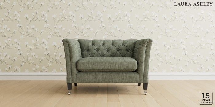 6.12.1 Buy Chatsworth Button Back by Laura Ashley Snuggle Bainton Sage Green Straight Chrome Castor - Black from the Laura Ashley online shop Click here to use our website with more accessibility support, for example screen readers