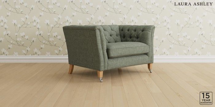 6.12.13 Buy Chatsworth Button Back by Laura Ashley Snuggle Bainton Sage Green Straight Chrome Castor - Light Oak from the Laura Ashley online shop Click here to use our website with more accessibility support, for example screen readers
