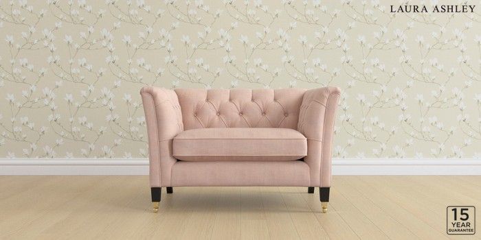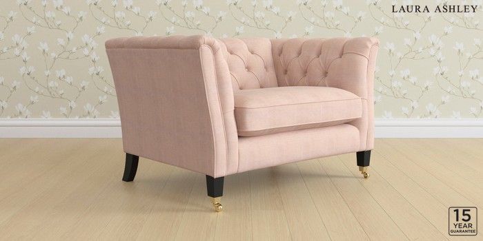 6.12.1 Buy Chatsworth Button Back by Laura Ashley Snuggle Edwin Chenille Blush Pink Straight Brass Castor - Black from the Laura Ashley online shop Click here to use our website with more accessibility support, for example screen readers