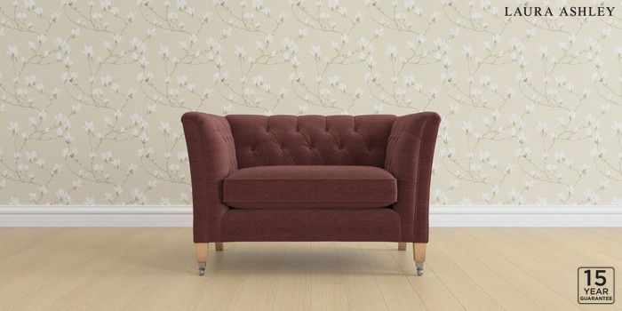6.12.13 Buy Chatsworth Button Back by Laura Ashley Snuggle Edwin Chenille Burgundy Red Straight Chrome Castor - Light Oak from the Laura Ashley online shop Click here to use our website with more accessibility support, for example screen readers