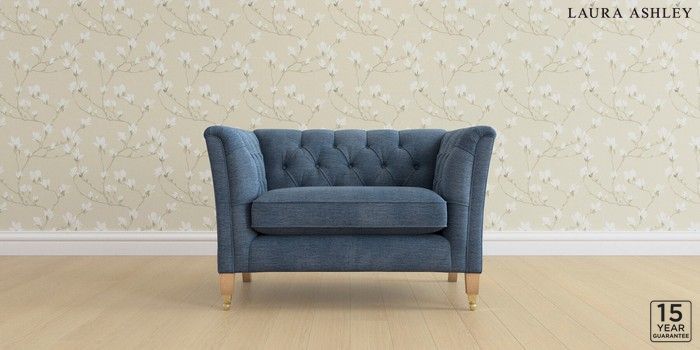 6.12.1 Buy Chatsworth Button Back by Laura Ashley Snuggle Edwin Chenille Seaspray Blue Straight Brass Castor - Light Oak from the Laura Ashley online shop Click here to use our website with more accessibility support, for example screen readers