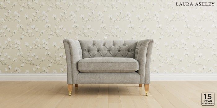 6.12.13 Buy Chatsworth Button Back by Laura Ashley Snuggle Edwin Chenille Silver Grey Straight Brass Castor - Light Oak from the Laura Ashley online shop Click here to use our website with more accessibility support, for example screen readers