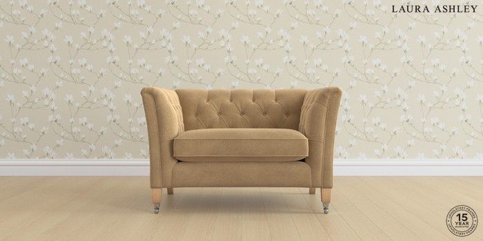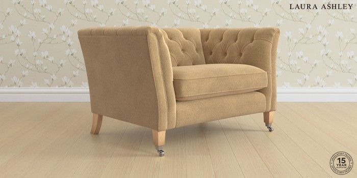 6.12.1 Buy Chatsworth Button Back by Laura Ashley Snuggle Lundar Chenille Caramel Natural Straight Chrome Castor - Light Oak from the Laura Ashley online shop Click here to use our website with more accessibility support, for example screen readers