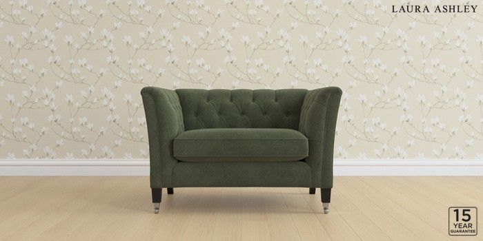 6.12.1 Buy Chatsworth Button Back by Laura Ashley Snuggle Lundar Chenille Ivy Green Straight Chrome Castor - Black from the Laura Ashley online shop Click here to use our website with more accessibility support, for example screen readers