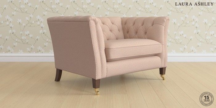 6.12.1 Buy Chatsworth Button Back by Laura Ashley Snuggle Melbreak Geo Chalk Pink Straight Brass Castor - Chestnut from the Laura Ashley online shop Click here to use our website with more accessibility support, for example screen readers