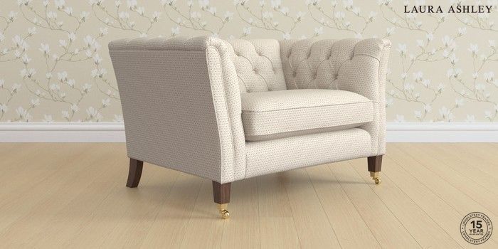 6.12.1 Buy Chatsworth Button Back by Laura Ashley Snuggle Melbreak Geo Light Natural Straight Brass Castor - Chestnut from the Laura Ashley online shop Click here to use our website with more accessibility support, for example screen readers