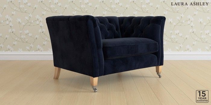 6.12.1 Buy Chatsworth Button Back by Laura Ashley Snuggle Orla Midnight Navy Straight Chrome Castor - Light Oak from the Laura Ashley online shop Click here to use our website with more accessibility support, for example screen readers