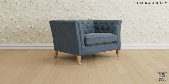 6.12.13 Buy Chatsworth Button Back by Laura Ashley Snuggle Orla Seaspray Blue Straight Brass Castor - Light Oak from the Laura Ashley online shop Click here to use our website with more accessibility support, for example screen readers