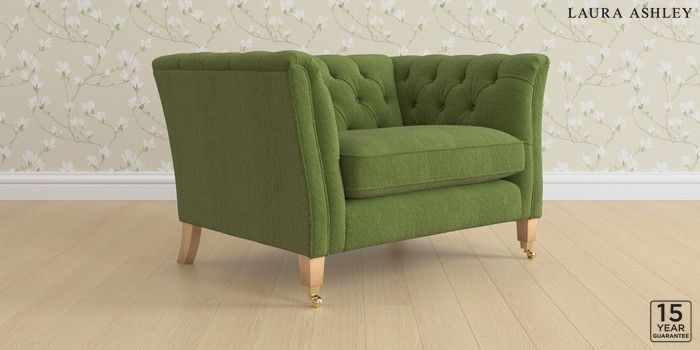 6.12.1 Buy Chatsworth Button Back by Laura Ashley Snuggle Tichwell Olive Green Straight Brass Castor - Light Oak from the Laura Ashley online shop Click here to use our website with more accessibility support, for example screen readers