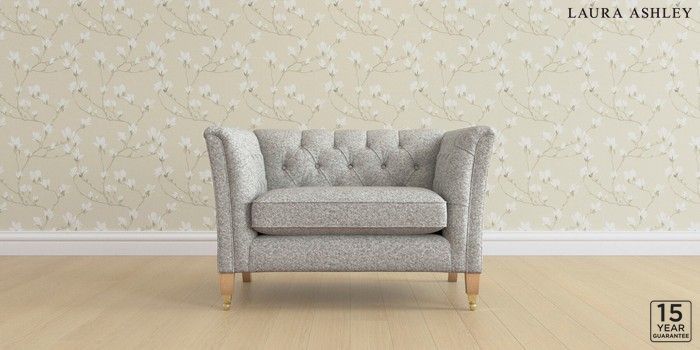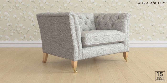6.12.1 Buy Chatsworth Button Back by Laura Ashley Snuggle Tichwell Steel Grey Straight Brass Castor - Light Oak from the Laura Ashley online shop Click here to use our website with more accessibility support, for example screen readers