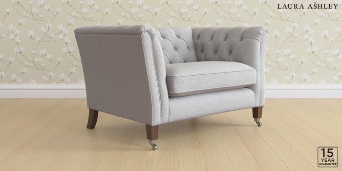 6.12.1 Buy Chatsworth Button Back by Laura Ashley Snuggle Wooton Pale Steel Grey Straight Chrome Castor - Chestnut from the Laura Ashley online shop Click here to use our website with more accessibility support, for example screen readers