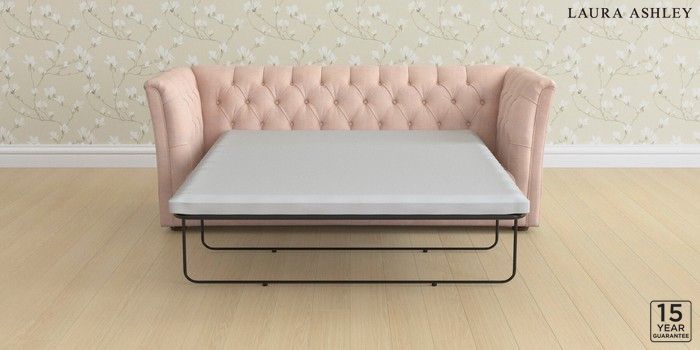 6.12.13 Buy Chatsworth Button Back by Laura Ashley Sofa Bed Edwin Chenille Blush Pink Bun Turned - Chestnut from the Laura Ashley online shop Click here to use our website with more accessibility support, for example screen readers