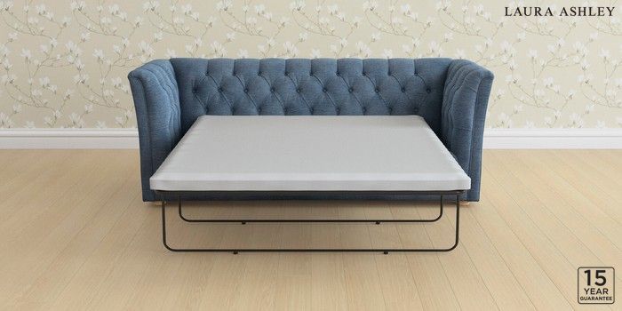 6.12.1 Buy Chatsworth Button Back by Laura Ashley Sofa Bed Edwin Chenille Seaspray Blue Bun Turned - Light Oak from the Laura Ashley online shop Click here to use our website with more accessibility support, for example screen readers