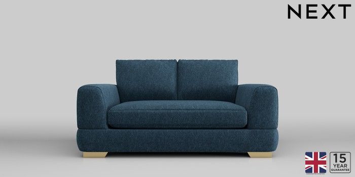 6.12.1 Buy Clayton 2 Seater Small Sofa Cotswold Chenille Dark Blue Large Square Angle - Brushed Brass from the Laura Ashley online shop Click here to use our website with more accessibility support, for example screen readers