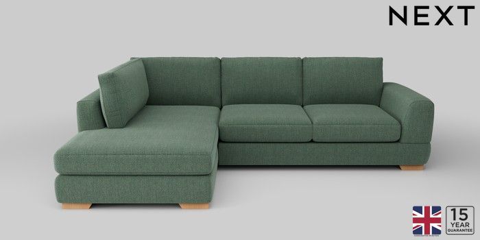6.12.13 Buy Clayton Medium Corner Chaise - Left Hand Chunky Texture Mid Forest Green Large Square Angle - Light from the Laura Ashley online shop Click here to use our website with more accessibility support, for example screen readers