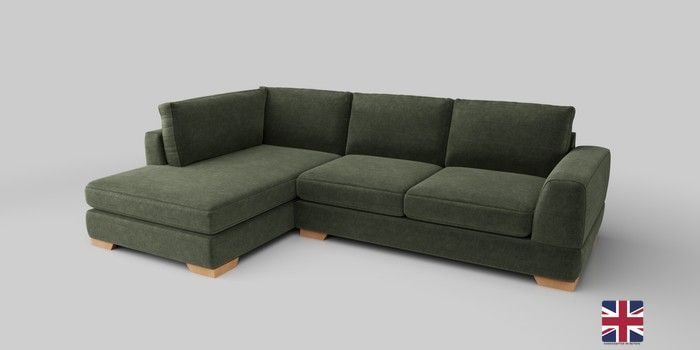 6.12.1 Buy Clayton Medium Corner Chaise - Left Hand Luxe Chenille Mid Green Large Square Angle - Light from the Laura Ashley online shop Click here to use our website with more accessibility support, for example screen readers