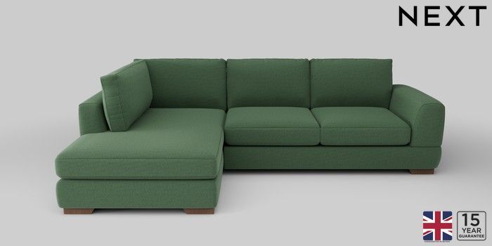 6.12.13 Buy Clayton Medium Corner Chaise - Left Hand Relaxed Linen Look Dark Green Large Square Angle - Mid from the Laura Ashley online shop Click here to use our website with more accessibility support, for example screen readers
