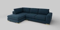 6.12.1 Buy Clayton Medium Corner Chaise - Left Hand Ripple Chenille Dark Blue Large Square Angle - Brushed Brass from the Laura Ashley online shop Click here to use our website with more accessibility support, for example screen readers