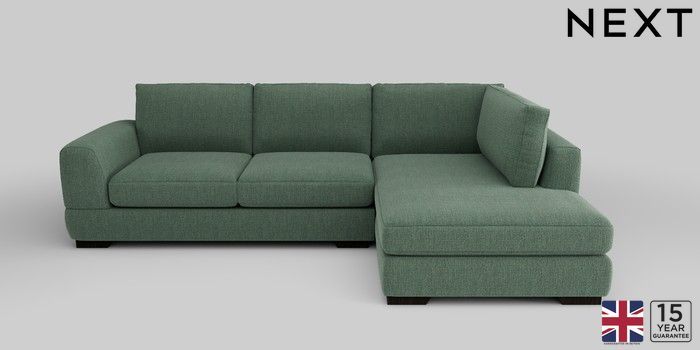 6.12.13 Buy Clayton Medium Corner Chaise - Right Hand Chunky Texture Mid Forest Green Large Square Angle - Dark from the Laura Ashley online shop Click here to use our website with more accessibility support, for example screen readers
