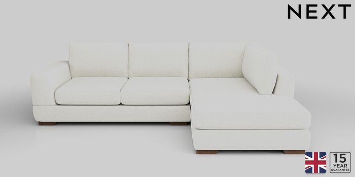 6.12.13 Buy Clayton Medium Corner Chaise - Right Hand Chunky Texture Oyster Large Square Angle - Mid from the Laura Ashley online shop Click here to use our website with more accessibility support, for example screen readers