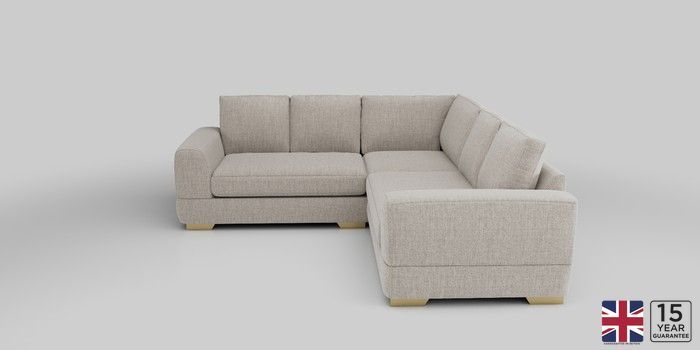 6.12.1 Buy Clayton Medium Corner Sofa - Universal Chunky Weave Dove Grey Large Square Angle - Brushed Brass from the Laura Ashley online shop Click here to use our website with more accessibility support, for example screen readers