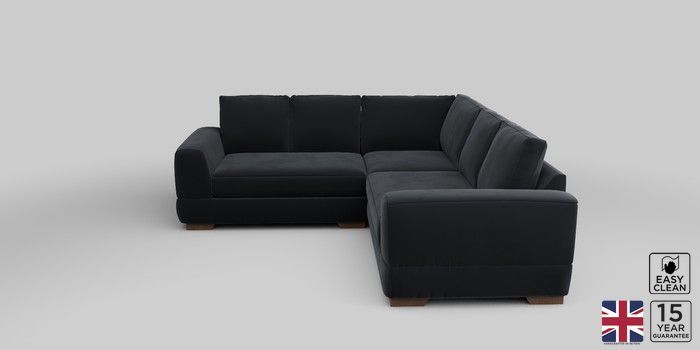 6.12.1 Buy Clayton Medium Corner Sofa - Universal Plush Velvet Easy Clean Charcoal Grey Large Square Angle - Mid from the Laura Ashley online shop Click here to use our website with more accessibility support, for example screen readers