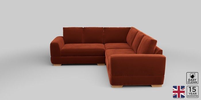 6.12.1 Buy Clayton Medium Corner Sofa - Universal Plush Velvet Easy Clean Ginger Orange Large Square Angle - Light from the Laura Ashley online shop Click here to use our website with more accessibility support, for example screen readers