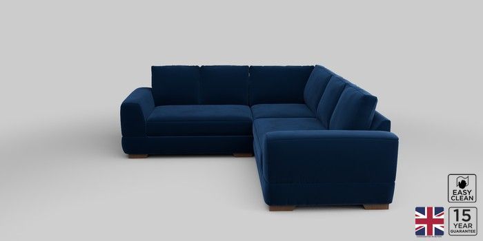 6.12.1 Buy Clayton Medium Corner Sofa - Universal Plush Velvet Easy Clean Navy Blue Large Square Angle - Mid from the Laura Ashley online shop Click here to use our website with more accessibility support, for example screen readers