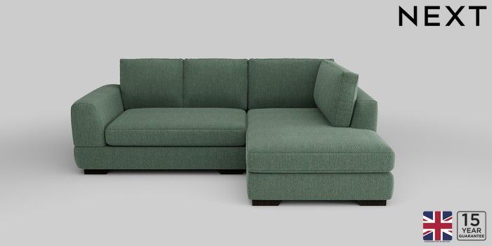 6.12.13 Buy Clayton Small Corner Chaise - Right Hand Chunky Texture Mid Forest Green Large Square Angle - Dark from the Laura Ashley online shop Click here to use our website with more accessibility support, for example screen readers