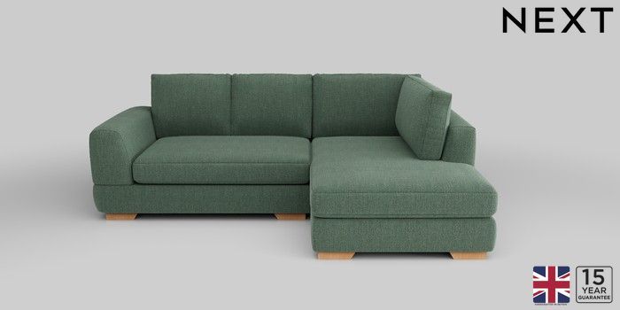 6.12.13 Buy Clayton Small Corner Chaise - Right Hand Chunky Texture Mid Forest Green Large Square Angle - Light from the Laura Ashley online shop Click here to use our website with more accessibility support, for example screen readers