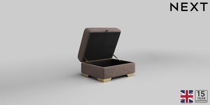 6.12.1 Buy Clayton Storage Footstool Luxe Chenille Mink Brown Square Angle - Brushed Brass from the Laura Ashley online shop Click here to use our website with more accessibility support, for example screen readers