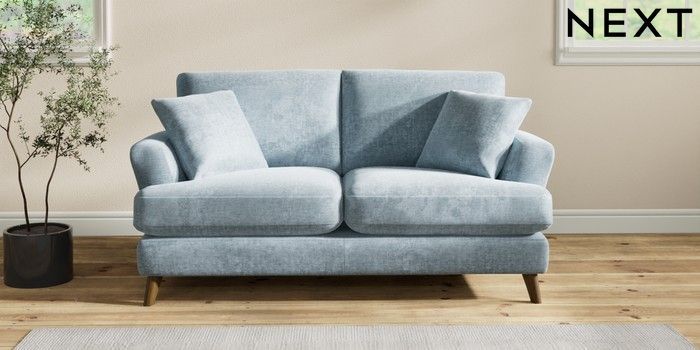 7.2.6 Buy Conway Relaxed Sit 2 Seater Sofa Plush Chenille Light Blue Low Retro Tapered - Mid from the Laura Ashley online shop Click here to use our website with more accessibility support, for example screen readers