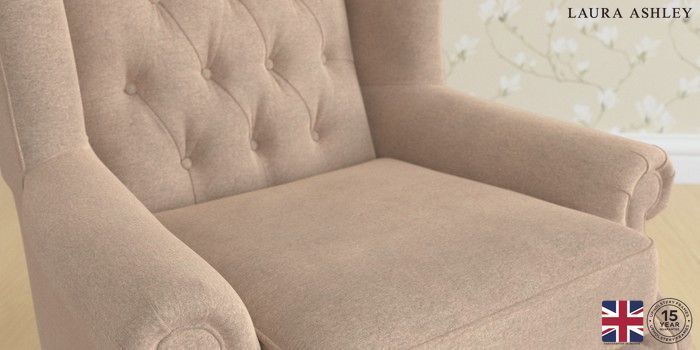 6.12.1 Buy Enderby Buttoned by Laura Ashley Armchair Ailsworth Mink Natural Unique Chrome Castor - Chestnut from the Laura Ashley online shop Click here to use our website with more accessibility support, for example screen readers