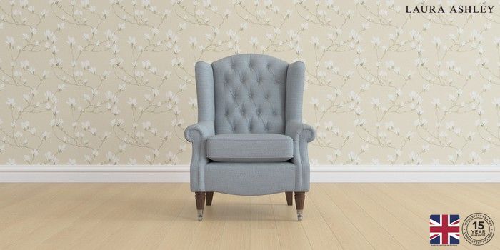 6.12.1 Buy Enderby Buttoned by Laura Ashley Armchair Kinsham Seaspray Blue Unique Chrome Castor - Chestnut from the Laura Ashley online shop Click here to use our website with more accessibility support, for example screen readers