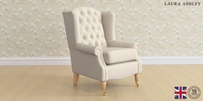 6.12.1 Buy Enderby Buttoned by Laura Ashley Armchair Melbreak Geo Light Natural Unique Brass Castor - Light Oak from the Laura Ashley online shop Click here to use our website with more accessibility support, for example screen readers