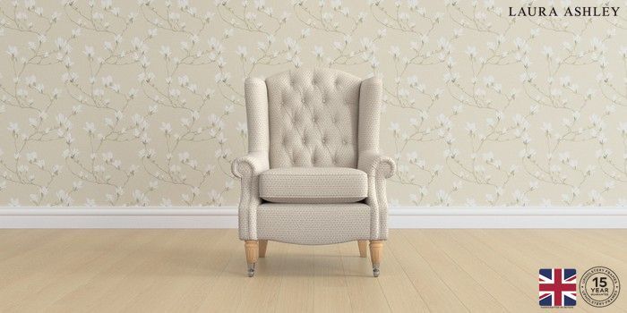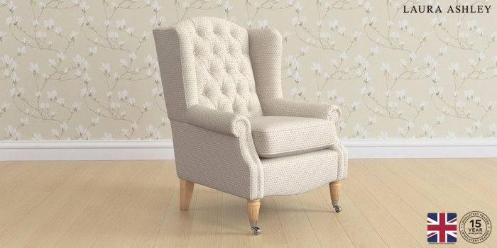 6.12.1 Buy Enderby Buttoned by Laura Ashley Armchair Melbreak Geo Light Natural Unique Chrome Castor - Light Oak from the Laura Ashley online shop Click here to use our website with more accessibility support, for example screen readers
