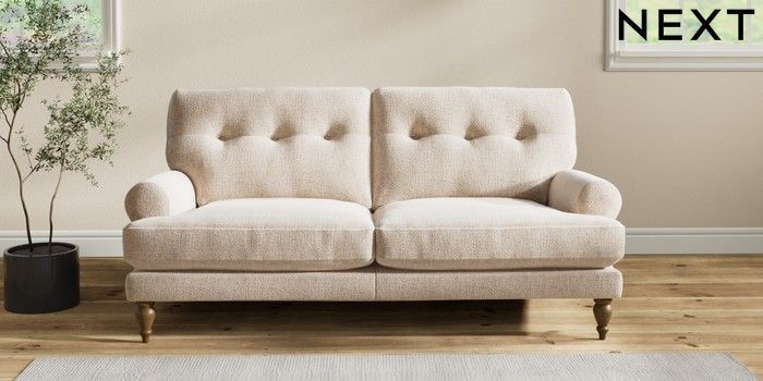 7.2.6 Buy Erin Buttoned Back Deep Relaxed Sit 3 Seater Small Sofa Multi Weave Mid Natural High Classic Turned - Mid from the Laura Ashley online shop Click here to use our website with more accessibility support, for example screen readers
