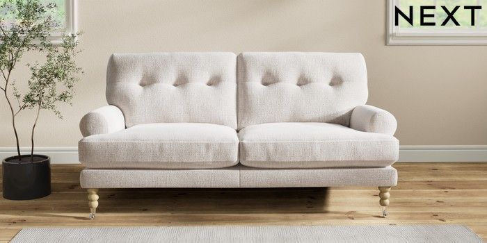Add charm to your living space with the Erin Button Back Sofa. Its elegant scroll arms and classic button-back cushions create a timeless look. You'll love its "Relaxed Sit" cushions, specially designed for ultimate comfort. These cushions are made with clever foam and fibre, giving you a wonderfully soft, plump feel. To keep them looking their best, simply plump and turn them regularly. Plus, you can make the Erin your own by choosing from a huge range of coloured fabrics.