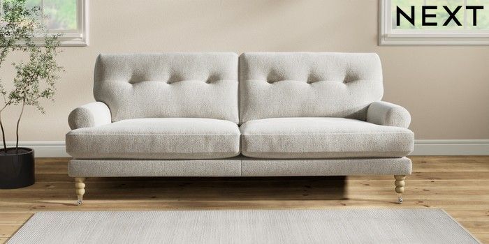 Add charm to your living space with the Erin Button Back Sofa. Its elegant scroll arms and classic button-back cushions create a timeless look. You'll love its "Relaxed Sit" cushions, specially designed for ultimate comfort. These cushions are made with clever foam and fibre, giving you a wonderfully soft, plump feel. To keep them looking their best, simply plump and turn them regularly. Plus, you can make the Erin your own by choosing from a huge range of coloured fabrics.