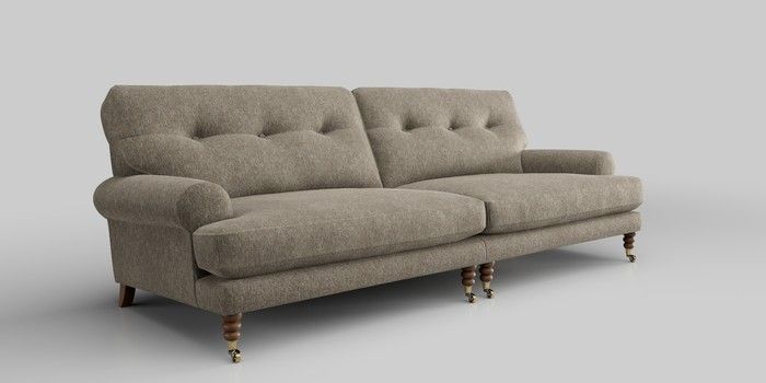 6.12.1 Buy Erin Buttoned Back Deep Relaxed Sit 4 Seater Large Sofa Cotswold Chenille Mid Mink Brown High Classic Turned Brass Castor - Mid from the Laura Ashley online shop Click here to use our website with more accessibility support, for example screen readers