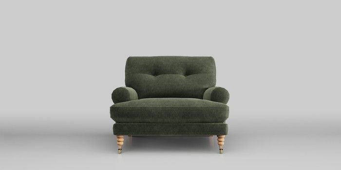 7.0.3 Buy Erin Buttoned Back Deep Relaxed Sit Armchair Luxe Chenille Mid Green High Classic Turned Brass Castor - Light from the Laura Ashley online shop Click here to use our website with more accessibility support, for example screen readers
