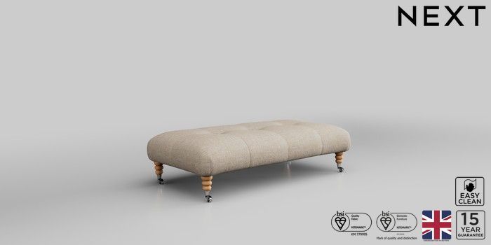 6.12.1 Buy Erin Buttoned Back Deep Relaxed Sit Extra Large Footstool Boucle Weave Easy Clean Dark Natural High Classic Turned Chrome Castor - Light from the Laura Ashley online shop Click here to use our website with more accessibility support, for example screen readers