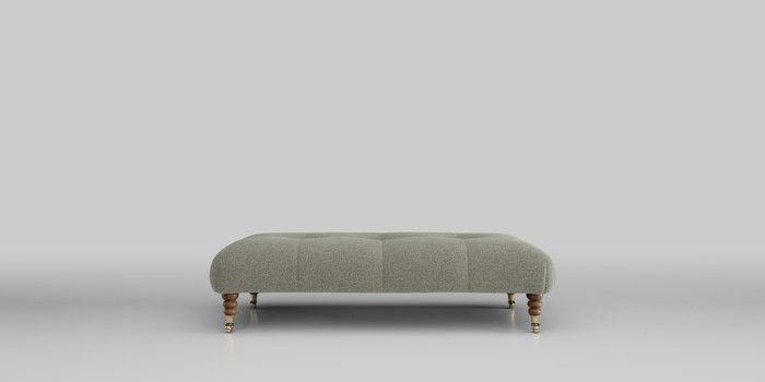 6.12.1 Buy Erin Buttoned Back Deep Relaxed Sit Extra Large Footstool Chunky Marl Light Olive Green High Classic Turned Brass Castor - Mid from the Laura Ashley online shop Click here to use our website with more accessibility support, for example screen readers