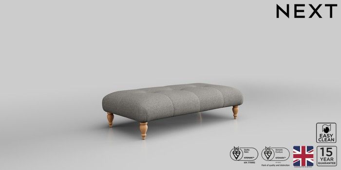 6.12.1 Buy Erin Buttoned Back Deep Relaxed Sit Extra Large Footstool Woven Chenille Easy Clean Light Grey High Classic Turned - Light from the Laura Ashley online shop Click here to use our website with more accessibility support, for example screen readers
