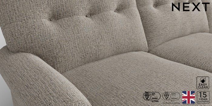 Add charm to your living space with the Erin Button Back Sofa. Its elegant scroll arms and classic button-back cushions create a timeless look. You'll love its "Relaxed Sit" cushions, specially designed for ultimate comfort. These cushions are made with clever foam and fibre, giving you a wonderfully soft, plump feel. To keep them looking their best, simply plump and turn them regularly. Plus, you can make the Erin your own by choosing from a huge range of coloured fabrics.