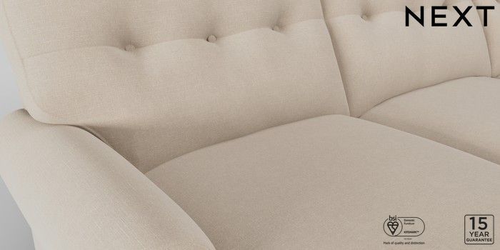 Add charm to your living space with the Erin Button Back Sofa. Its elegant scroll arms and classic button-back cushions create a timeless look. You'll love its "Relaxed Sit" cushions, specially designed for ultimate comfort. These cushions are made with clever foam and fibre, giving you a wonderfully soft, plump feel. To keep them looking their best, simply plump and turn them regularly. Plus, you can make the Erin your own by choosing from a huge range of coloured fabrics.
