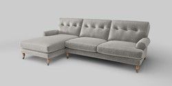 6.12.1 Buy Erin Buttoned Back Deep Relaxed Sit Medium Sofa Chaise - Left Hand Plush Chenille Light Grey High Classic Turned Chrome Castor - Light from the Laura Ashley online shop Click here to use our website with more accessibility support, for example screen readers